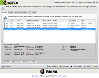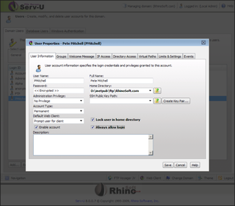 FTP Serv-U es un servidor FTP muy fácil de usar y muy completo. Tiene potentes opciones de seguridad: passwords, especificación de atributos leer/escribir/modificar por directorio/archivo para cada usuario, ratios de upload/download, límites de espacio para cada cuenta (disk quota).